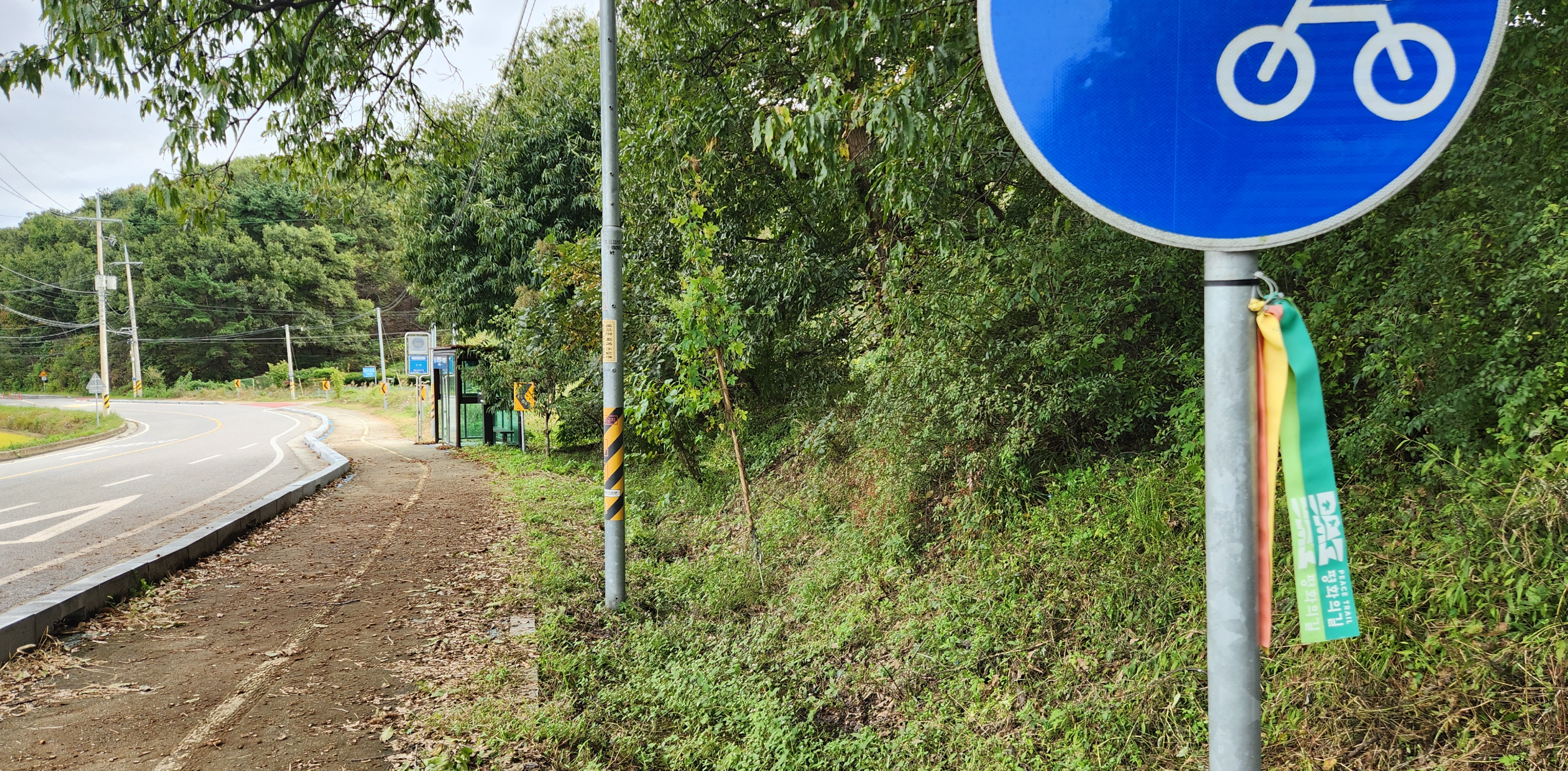 DMZ 평화의 길을 안내할 첫 리본이다. 빗속을 통과해 이곳에 도착했지만 지금 여기는 걷기에 참 좋은 날씨다.