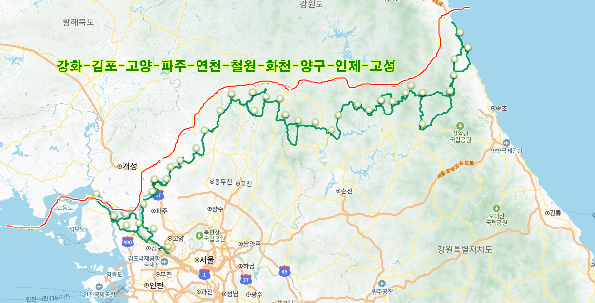 양산에서 울산역으로, KTX를 타고 서울역 그리고 공항철도와 김포골드선을 타고 걸포북변역에서 하차, 3000번 버스를 타고 강화여객터미널에서 하차, 버스터미널에서 26번 버스를 타고 제적봉 평화전망대로... 오전 7시에 집을 나와 오후 2시 45분 강화 평화전망대 버스 정류장에 하자했다. 이제 DMZ 평화의 길 1코스 걷기를 시작한다.