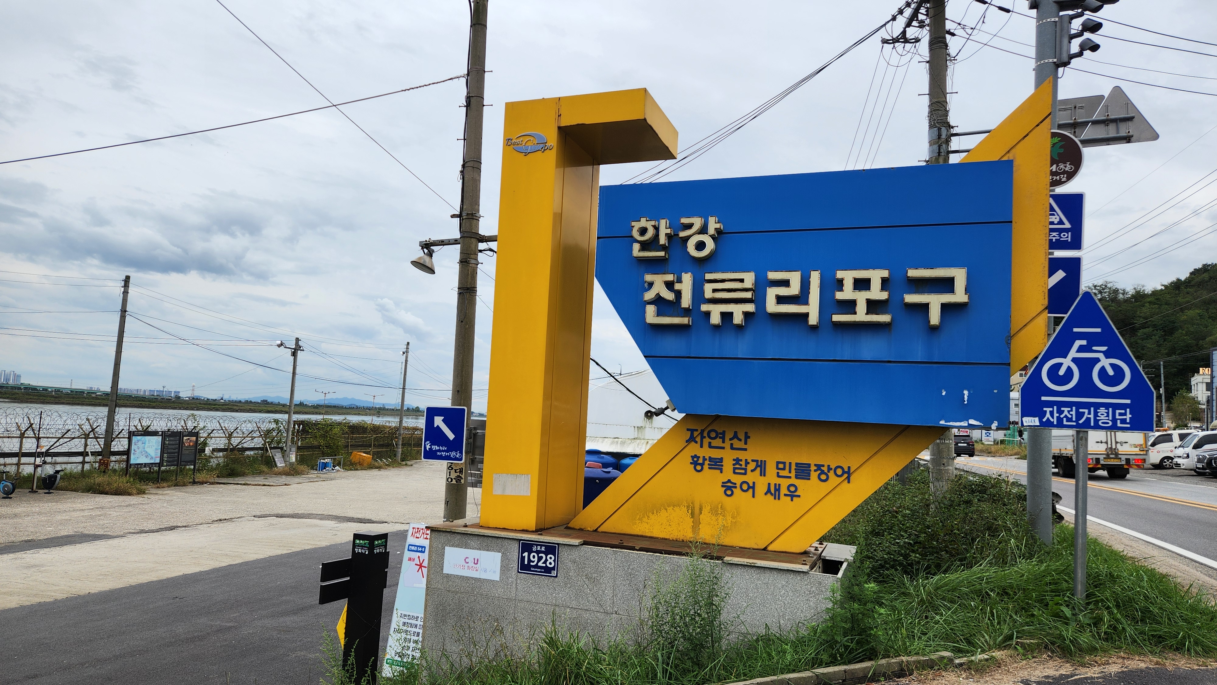 오늘의 목적지 전류리포구에 도착했다. 드디어 한강 하류의 소박한 포구를 보나 기대했지만 실망스럽게도 철책 너머로 배 몇 척이 보일 뿐이다. 이곳은 완벽히 군의 통제를 받고 있고, 당연히 누구나 접근이 가능한 일반적인 모습의 포구가 아니다.