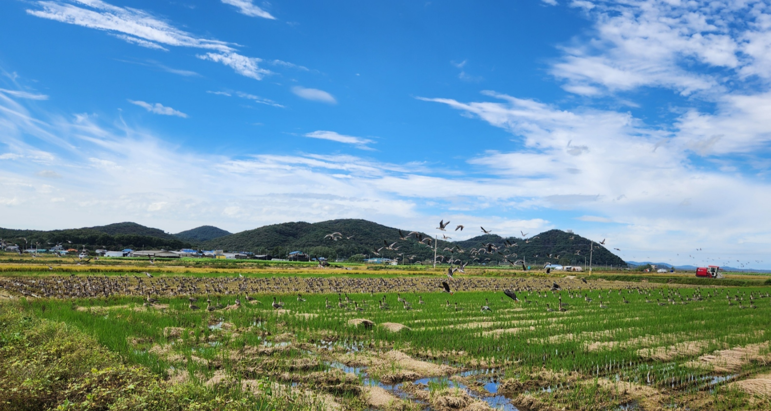 이곳은 김포평야이다. 넓은 들에 논이 펼쳐져 있다. 농로를 걸어가던 중 철새들의 사열을 받았다. 중국 주석 시진핑이 전승절에 군대 사열을 하면 각 부대는 큰 함성과 함께 경례로 충성을 맹세하는 장면을 얼마 전 TV를 통해서 봤다. 마치 군부대 사열을 하듯이 내가 지나가면 각 논에 앉아있던 철새부대는 차례로 큰 소리를 내며 하늘로 군무를 펼친다. 지구를 종횡하는 비행군단의 사열은 길 가는 나그네에게 종종 이루어진다. 괜찮은 기분이지만 녀석들을 귀찮게 하는 것 같아 미안하기도 하다.