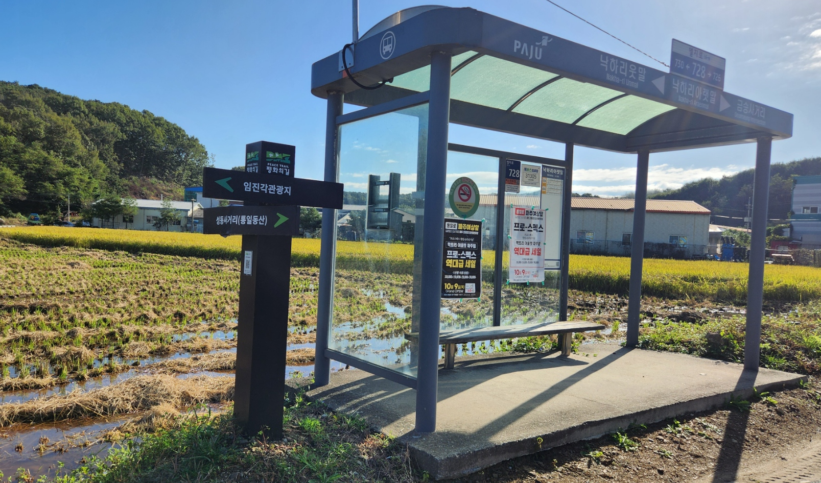 10월 17일(금) 초새벽에 잠에서 깼다. 아직 움직일 때가 아니다. 새벽하늘이 밝아져야 밖으로 나갈 수 있다. 다시 잠을 청한다. 이번 걷기 여행은 내일까지다. 서울에서 조카의 결혼식이 있다. 갈 수 있는 데까지 최대한 걸을 생각이다. 6시를 넘겨 커피를 한 잔 마시고 길로 나왔다. 오늘은 어디까지 가야 할까? 오후에 결정하자. 일단 출발이다. 6코스는 파주 통일동산 성동사거리에서 시작된다.