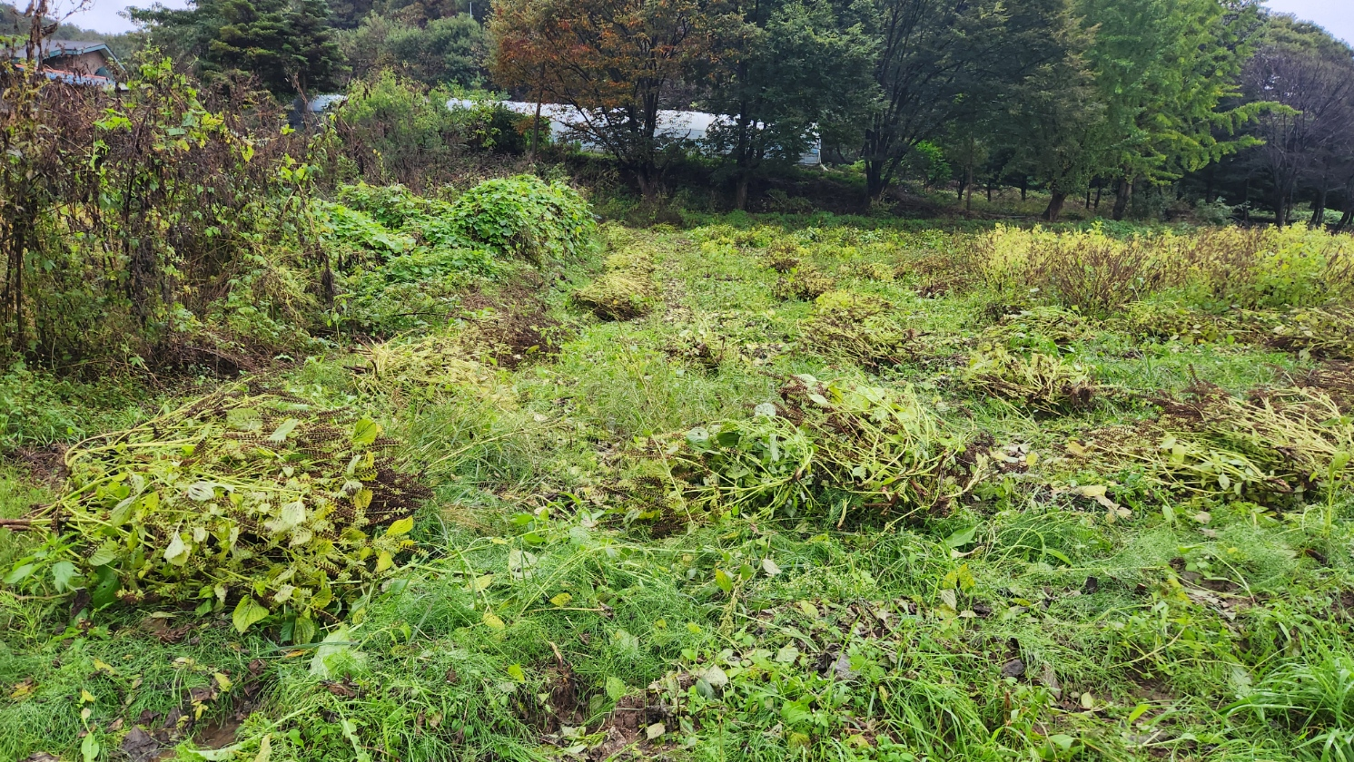 비에 젖은 아침 한 농부가 들깨를 자빠트리고 있다. 젖은 공기 속으로 들깨향이 길가에 확 퍼진다. 그 내음을 맡으니 기분이 상쾌하다.