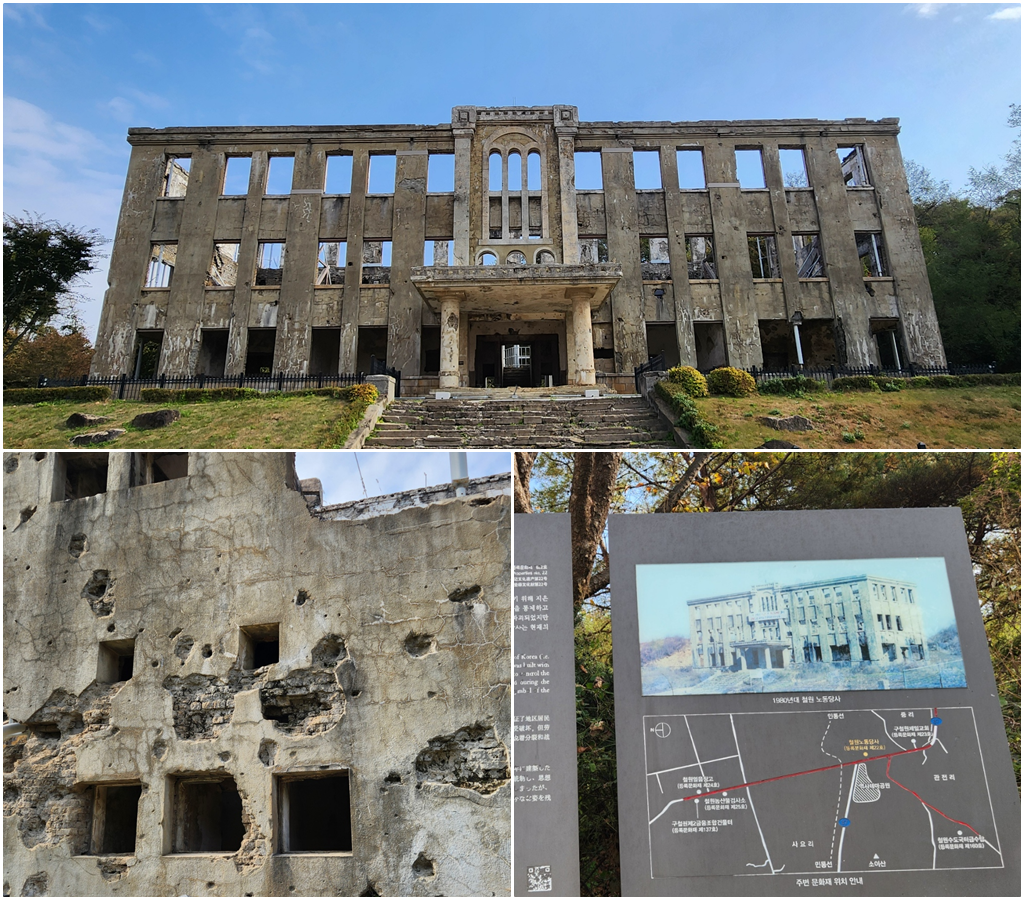 철원에 들어설 때 가장 보고 싶은 곳이 '노동당사'이다. 군남댐처럼 노동당사도 육안으로 직관하기는 처음이다. 대부분의 많은 나라들이 외환이던 내환이던 전쟁의 생채기를 갖고 있을 터이지만 한국전쟁은 그 땅에 사는 사람들에게 너무나 큰 상처를 입혔다. 권력에 눈 먼 인간들이 낸 생채기에 새살이 돋아날 기미는 아직도 없다.